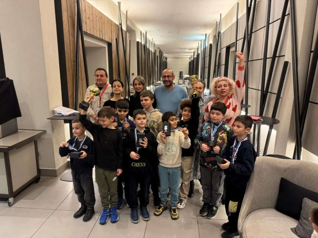 Ανάμεσα στους νικητές του GROUP Γ ο τρίτος από δεξιά Αρζουμανίδης Μάξιμος ως 1ος στην ειδική κατηγορία U10 και 7η από δεξιά η Κουγιουμτζόγλου Μαργαρίτα με το κύπελλο ως 1ο κορίτσι και 4η στην γενική κατάταξη του τουρνουά.